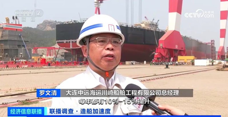 继1月7日央视纪录片《大东北》之后,大连中远海运川崎于5月29日再次登上央视,CCTV-2《经济信息联播》节目以《联播调查·造船加速度》为题,对大连中远海运川崎的造船完工量、新接订单量、手持订单量等生产经营情况进行报道,展现了在当前复杂的全球贸易形势下,中国船企强劲的市场韧性与竞争力。同时,节目还围绕造船产业高端智能绿色化加速推进、新接绿色动力船舶订单份额连年增长等发展趋势,对大连中远海运川崎进行了深度采访报道。公司总经理、党委书记罗文清、总经理助理何金伟接受了央视采访。 年内再次登上央视,充分展现了大连中远海运川崎高质量发展成效,树立了公司良好的品牌形象。在中远海运集团和中远海运重工的关心和领导下,大连中远海运川崎已建成交付了24000箱集装箱船、30.8万载重吨油轮等10余种船型130艘优质船舶,建造能力和盈利能力连年提升,成功打造了国家级企业技术中心,成为行业首家智能制造示范工厂揭榜单位,在绿色、数字、智能等多个领域保持行业领先。 2025年1-4月,大连中远海运川崎建成交付3艘船舶,交船载重吨同比增加了58%,全年计划建成交付船舶12艘,作业量保持了每年10%-15%的增速;在新接订单方面,2025年以来新接订单9艘,同比增加195%,手持订单排至2029年,展现良好发展势头;在高技术船舶和绿色船舶建造领域,公司首制LNG(液化天然气)双燃料油轮预计于9月建成交付,甲醇双燃料集装箱船即将开工,氨燃料、氢燃料等零碳燃料船型也在开发储备中;在数字智能方面,公司已建成25条智能化生产线和2个智能化车间,建造的智能船舶搭载船岸数据通讯、船舶智能管理等数“智”化系统,为智能航运和智能航服赋能,为集团和重工打造“全生命周期数字智能船舶运营平台”贡献了力量。 长风破浪会有时,直挂云帆济沧海。在集团、重工的正确领导下,大连中远海运川崎将全力打好 “十四五” 收官战,在“数字智能”、“绿色低碳”两个新赛道上跑出加速度,为中国船舶行业高质量发展打造典范,为“东北振兴”和“海上丝绸之路”建设贡献更多力量! | |||||||